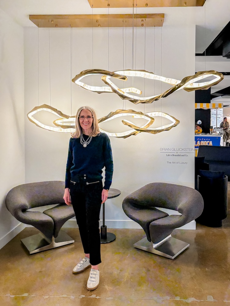 The beautiful flowering branches of the Fiori Chandelier by Lib & Co. are finished in gold leaf with intricate glass blossoms in clear and frosted white glass. Each petal is delicately shaped to catch and diffuse the light. The 2 colors of flowers provide a layered, ethereal glow. It’s a showstopper and certainly caught my eye!