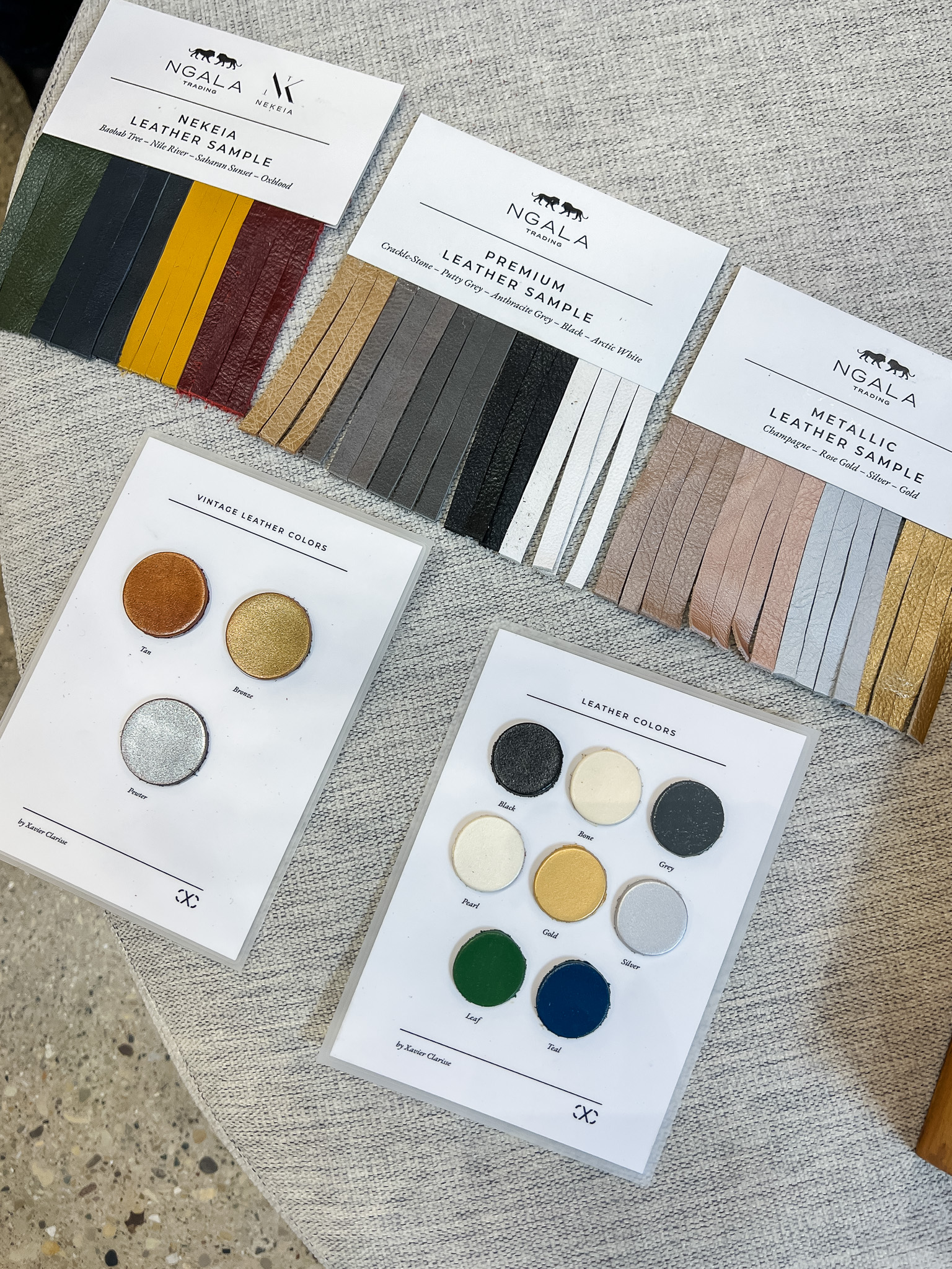 The leather Urchin Chandelier by Ngala Trading Company comes in many sizes and leather colors. Each piece of leather is hand draped to give every piece a unique organic feel. I have all the colors and materials in the showroom for you to touch and feel.