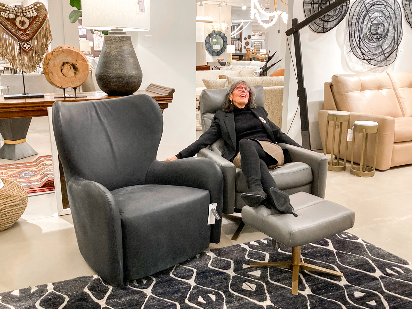 Two pieces from American Leather, the Cirrus Chair & Ottoman and the Kobe Swivel, are my favorite finds. American Leather offers a full range of looks, from traditional to current, plus best selling sleepers. Great leathers, great comfort, and best of all, great timeline!